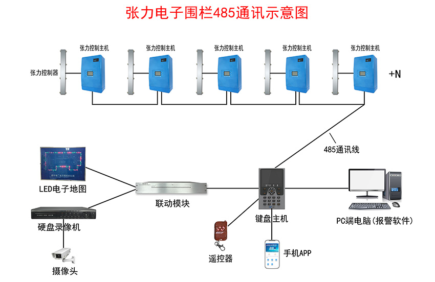 張力電子圍欄報警系統(tǒng)示意圖——485通訊