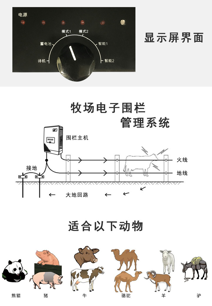 • 適用于牧場(chǎng)、養(yǎng)殖場(chǎng)、動(dòng)物園等,可以限制圈養(yǎng)動(dòng)物的活動(dòng)范圍;